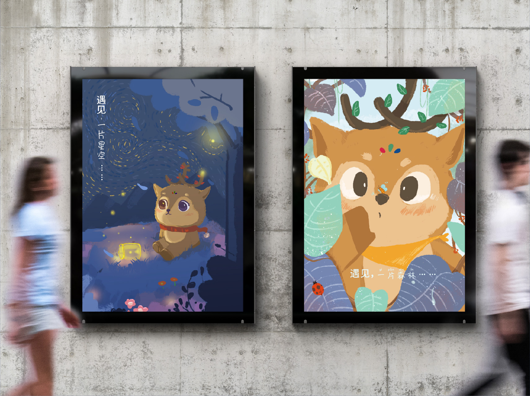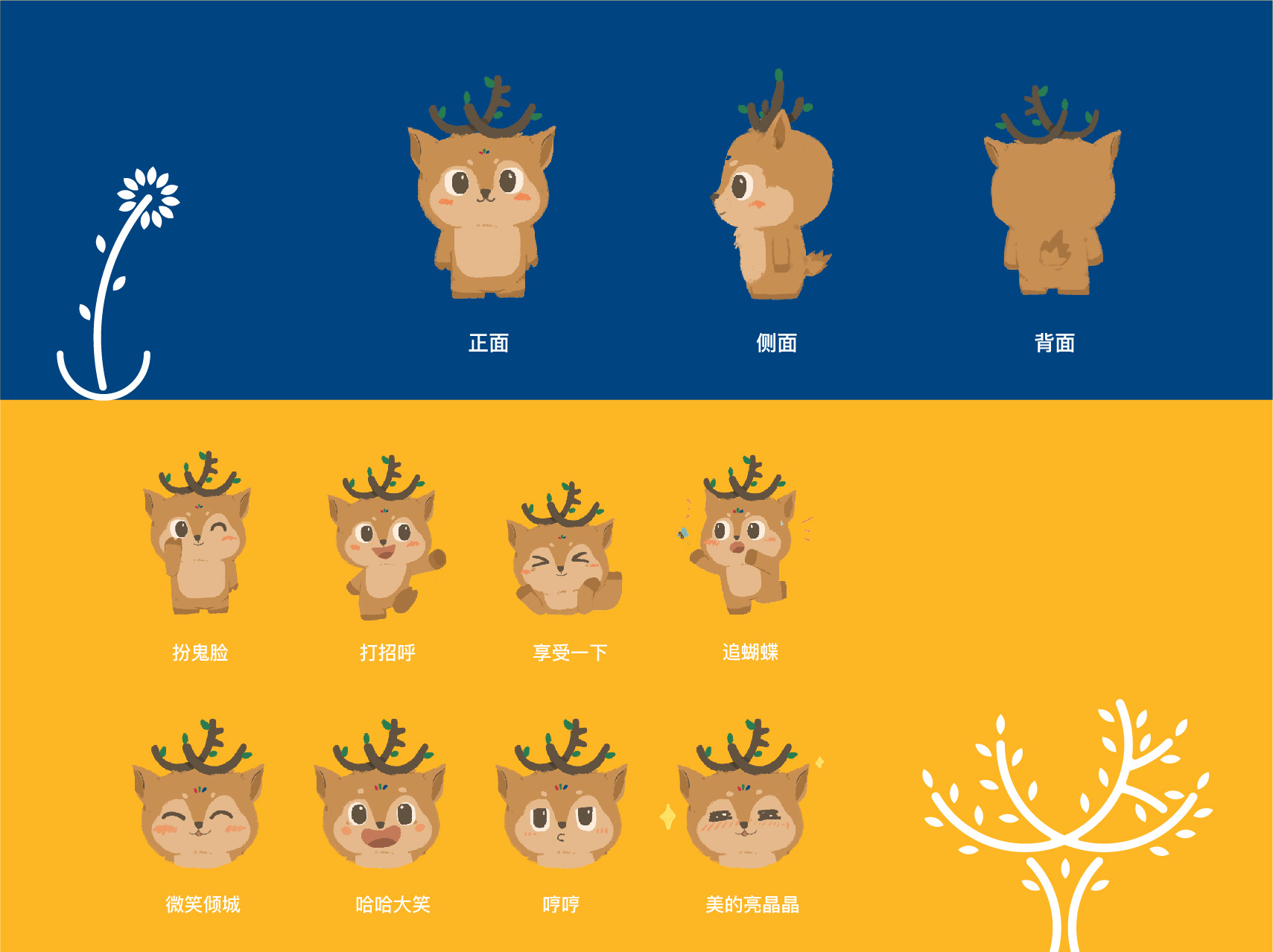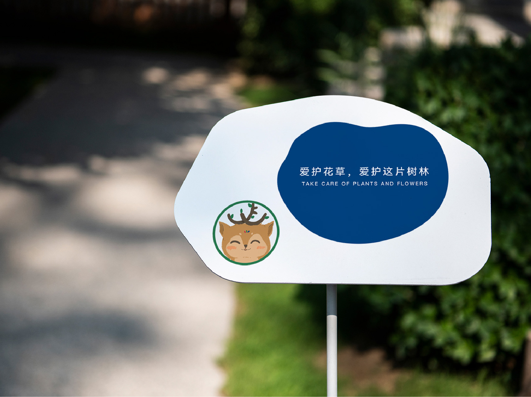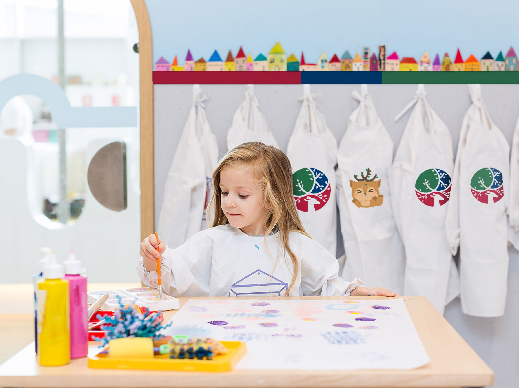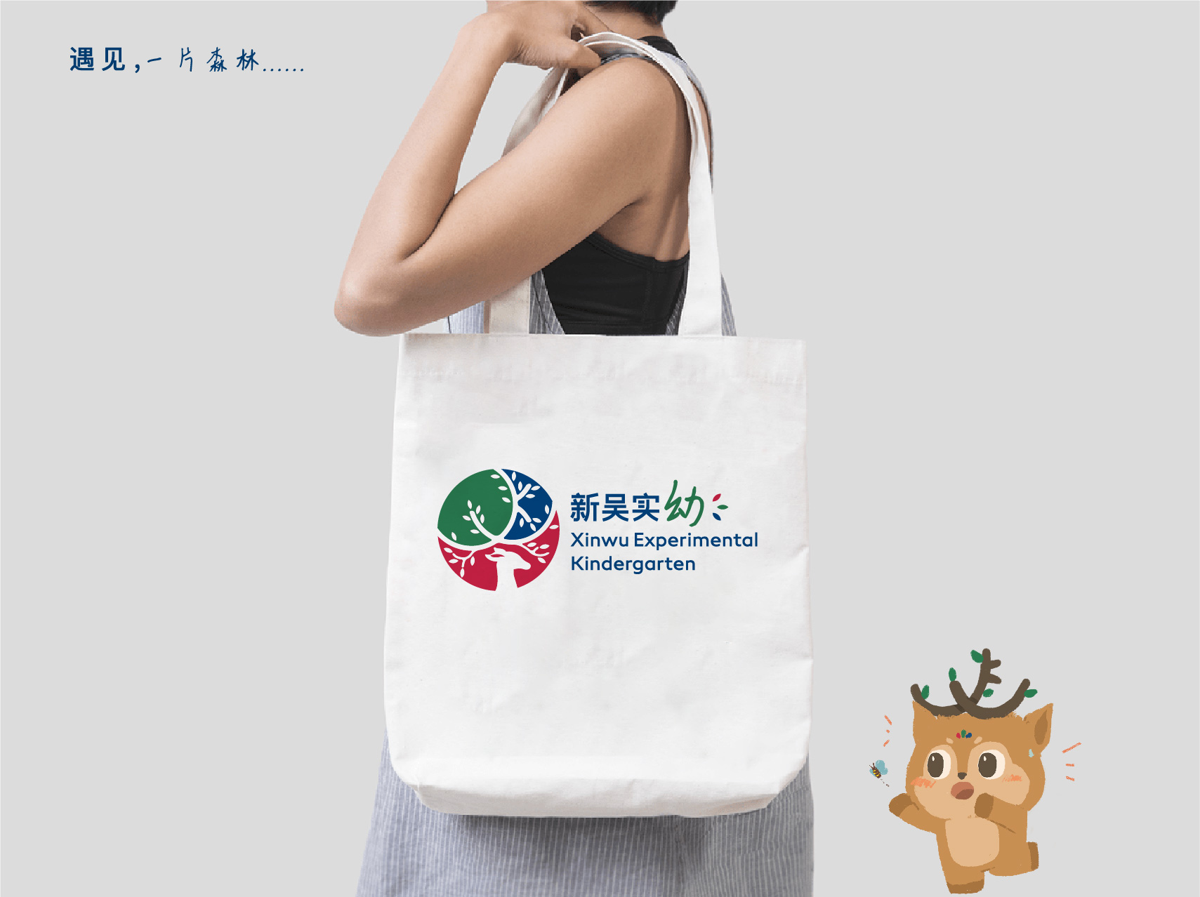 設(shè)計(jì)中,選取小鹿的形象特征作為設(shè)計(jì)元素,寓意著兒童天真爛漫、自由無拘束的個性,有著世界上最美好的道德品質(zhì)。而幼兒園則是為其提供庇護(hù)的森林。