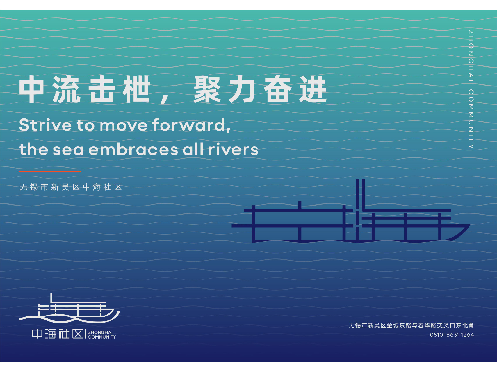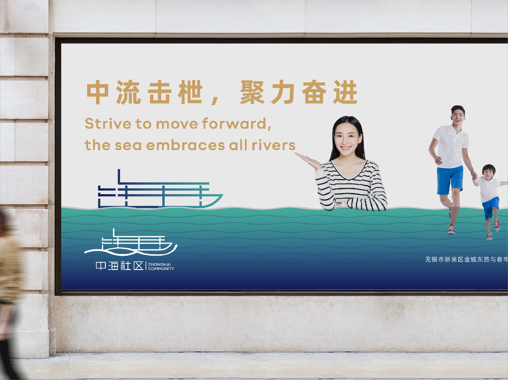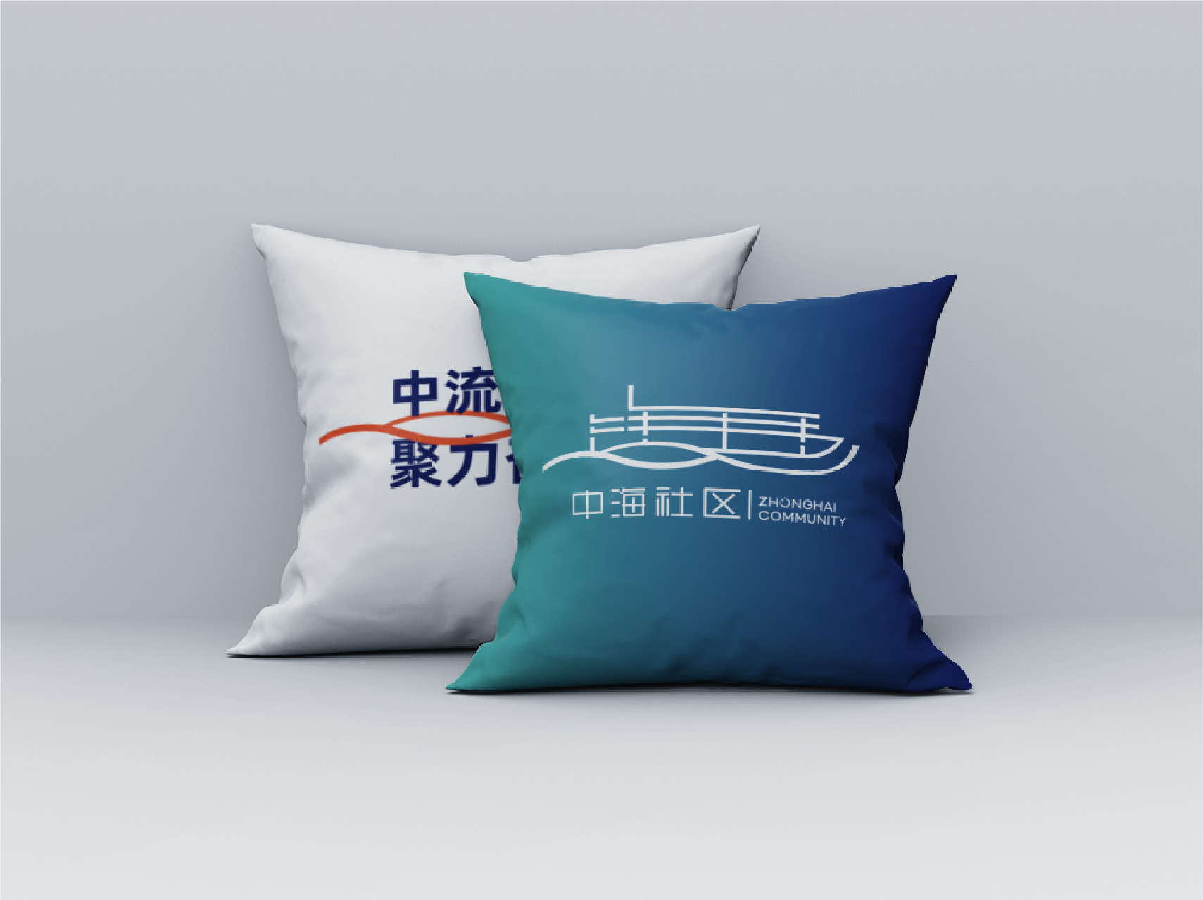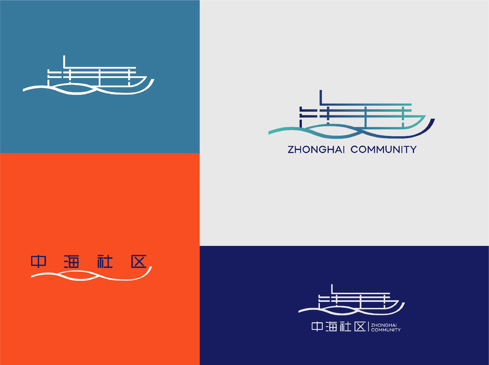 設(shè)計(jì)理念:將中海社區(qū)的品牌具象化為一艘游輪的概念形象,符合中海的形象聯(lián)想,同時(shí)加入水流的痕跡,抽取交握雙手的曲線線條,