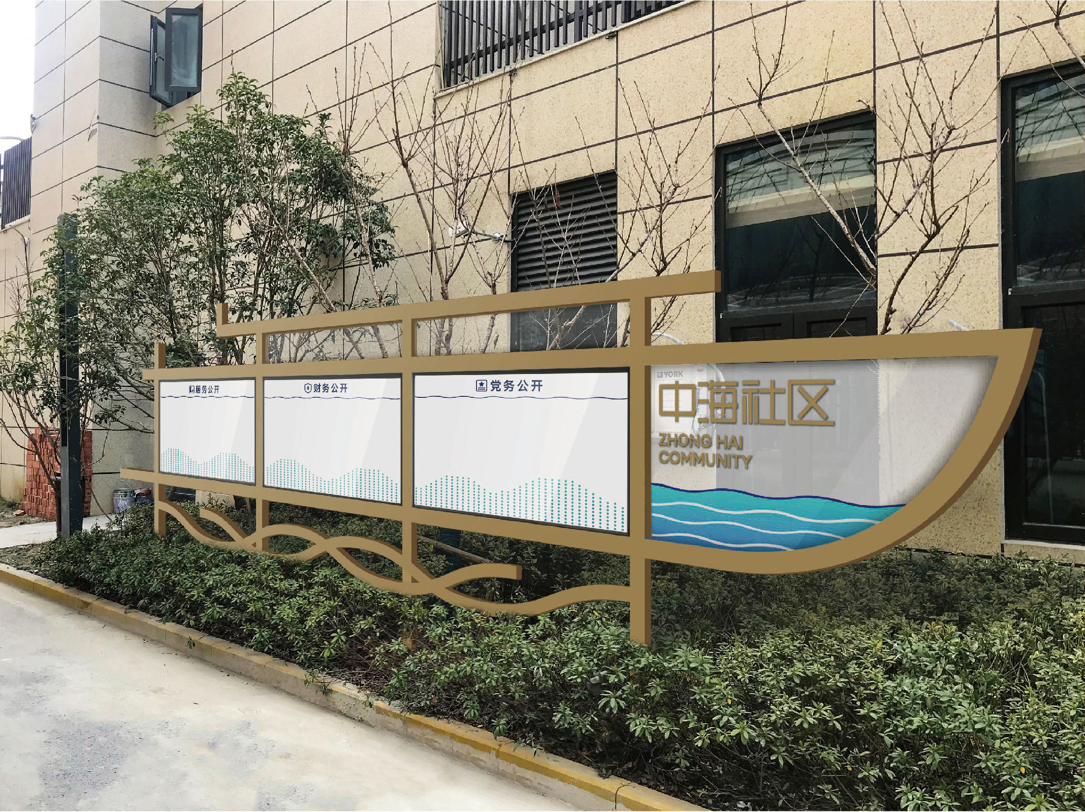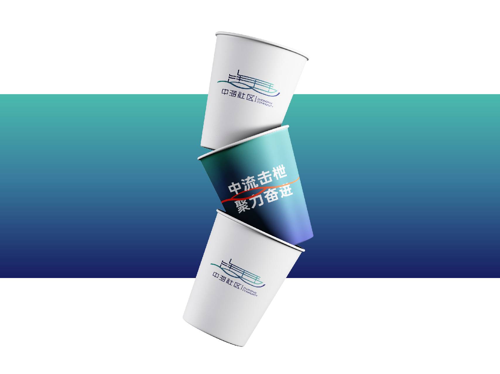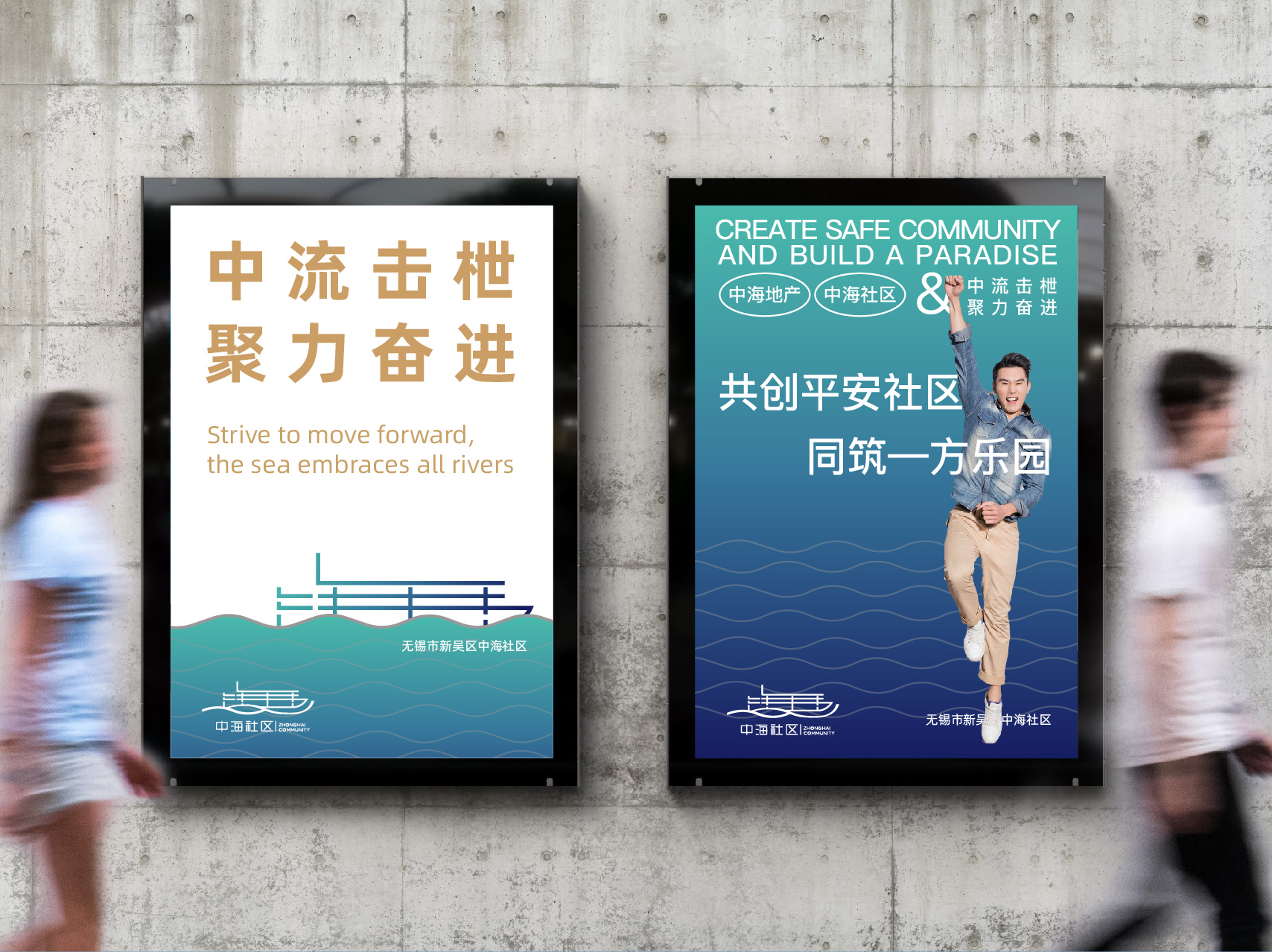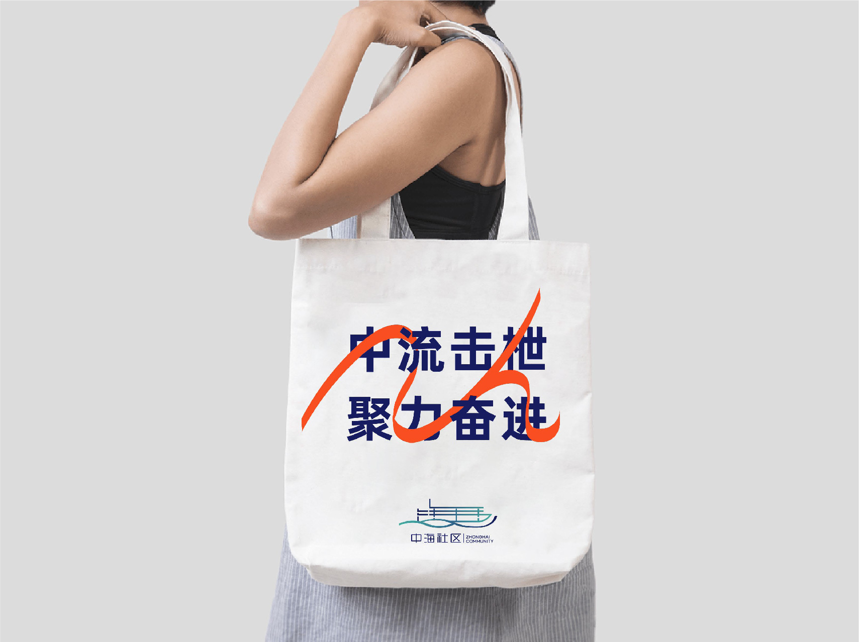 設(shè)計(jì)理念:將中海社區(qū)的品牌具象化為一艘游輪的概念形象,符合中海的形象聯(lián)想,同時(shí)加入水流的痕跡,抽取交握雙手的曲線線條,