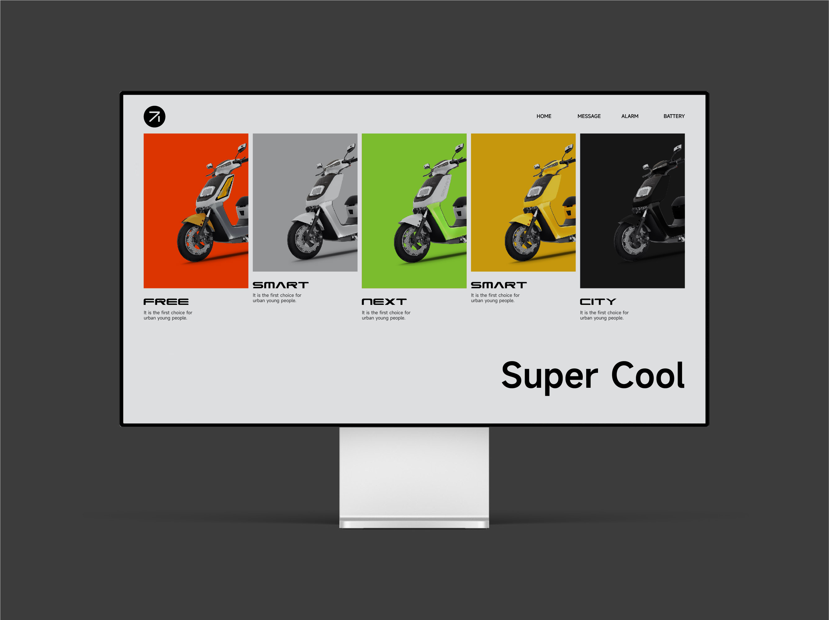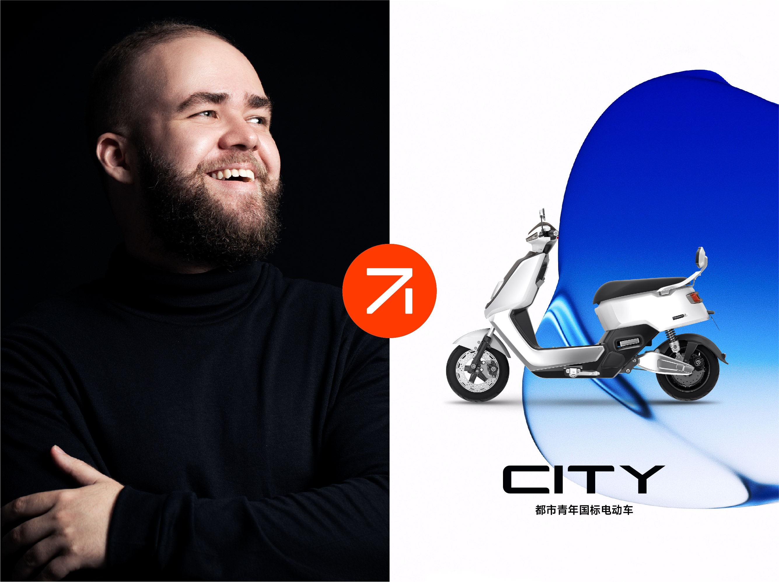 配色上選用黑白色,和電動車“外形有范,出行有派”的主題相呼應(yīng)。