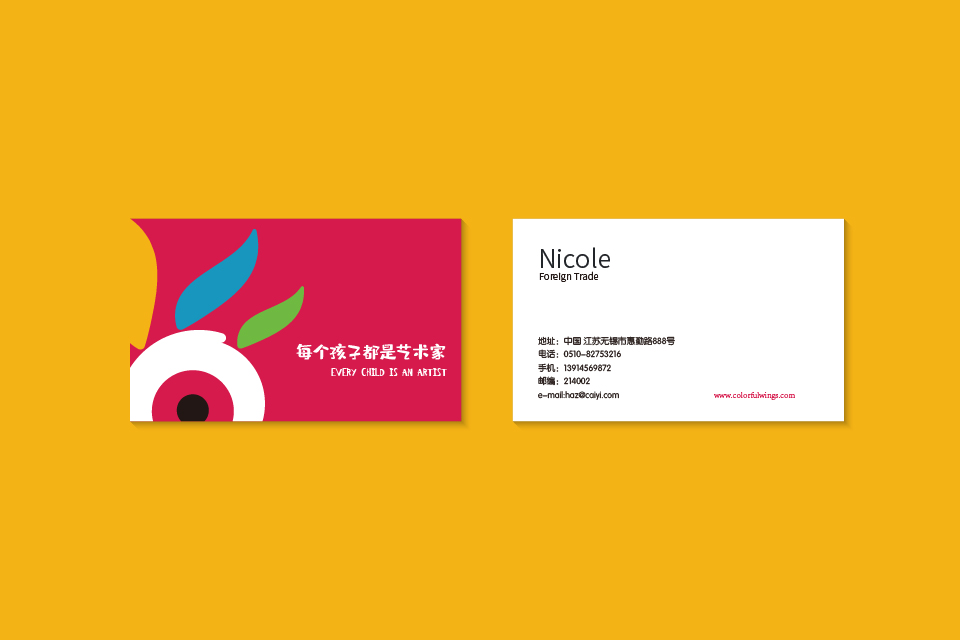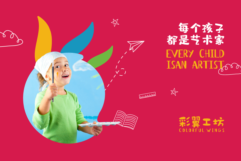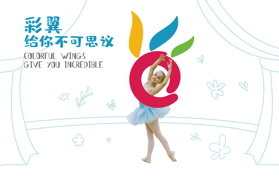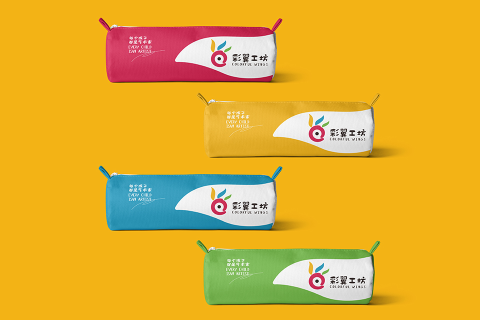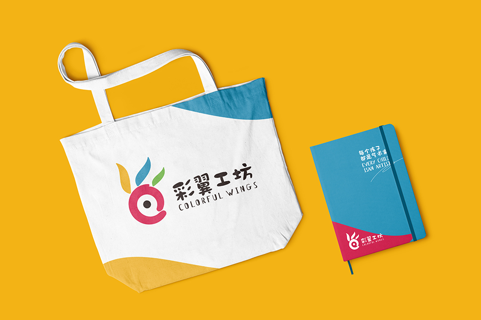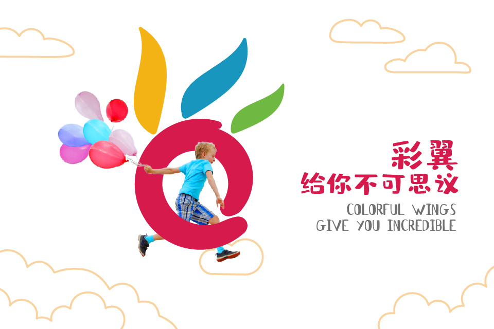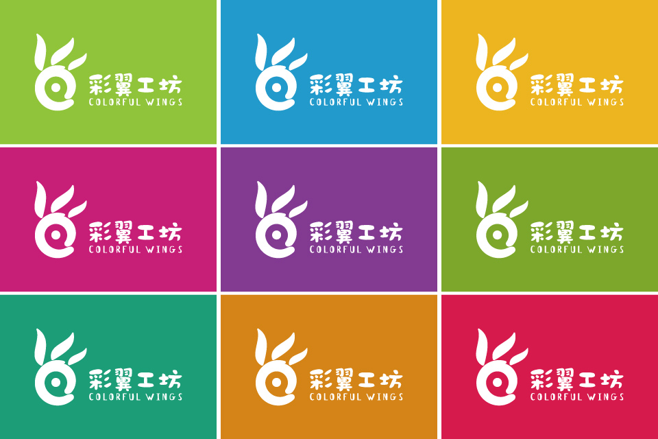 飛翔的鳥兒配上五彩的翅膀,寓意孩子將在彩翼工坊得到全面的培養(yǎng),顏色明快,積極向上,也貼合教育園讓孩子快樂學(xué)習(xí)的教育宗旨。彩翼工坊四字用稚藝童趣的字體,使logo含義更為突出。