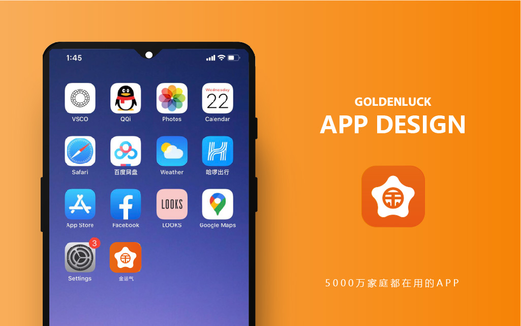 顏色采用活力滿滿的橙色,一是代表公司蓬勃發(fā)展、活力四射;二是象征家的溫暖,再次強調(diào)“金運氣”品牌走向千家萬戶的決心。