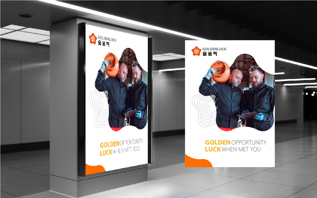 logo外形靈感來源于氣罐的旋鈕。它是人與燃氣/氧氣的一個連接,可以讓人很好地聯(lián)想到產(chǎn)品屬性,也有著“好運來、時來運轉(zhuǎn)”的美好寓意;中間將“金”字做了中式窗格化處理,強化金運氣親民的品牌形象。