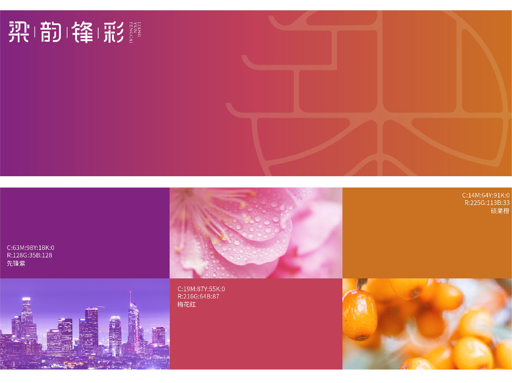 設(shè)計(jì)理念:特色底“韻”元素和現(xiàn)代元素相融合,以“梁韻鋒彩”作為品牌主題。