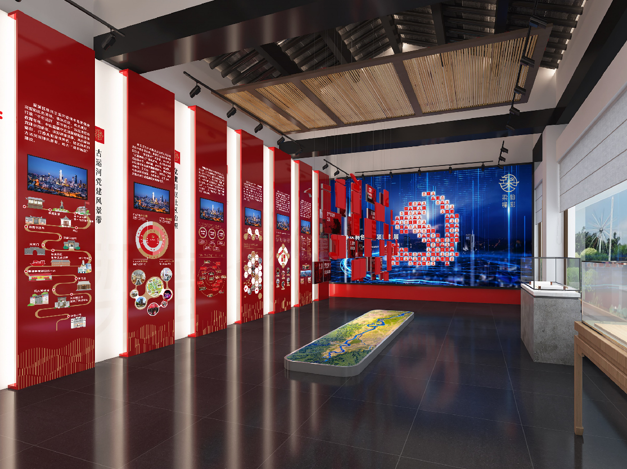 將此寓意下的當(dāng)?shù)氐那迕麡颉⑦\(yùn)河、船只、漏窗、色彩等眾多元素融合在創(chuàng)新創(chuàng)作之中。既符合新時(shí)代背景下紅色黨建品牌形象,